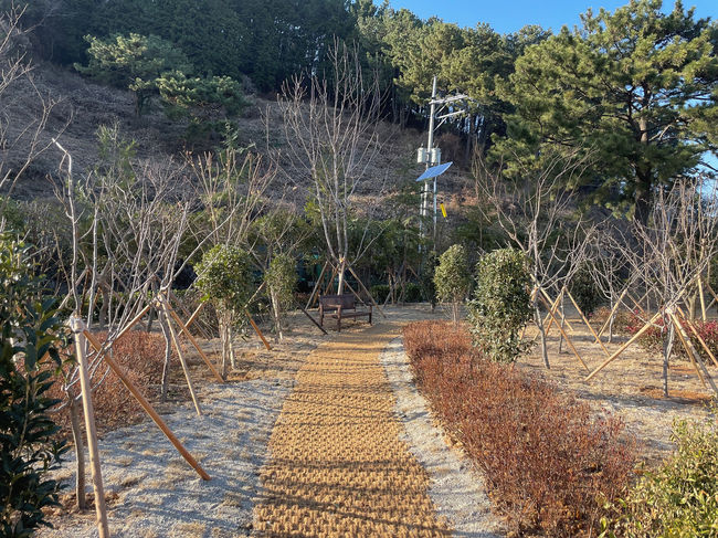 특히, 환경자원화센터 주변에는 미세먼지 저감수종과 이팝나무, 금목서, 배롱나무 등 계절별 꽃이 피는 수종을 식재하여 아름다운 녹지공간으로 조성하였으며, 또한 퍼걸러, 데크쉼터, 야자매트를 추가 설치하여 도시숲 내에서 산책하며 휴식할 수 있는 장소로 조성하여 미세먼지 저감효과와 함께 시민들의 건강증진 및 생태 감수성 함양에도 기여할 것으로 기대된다.