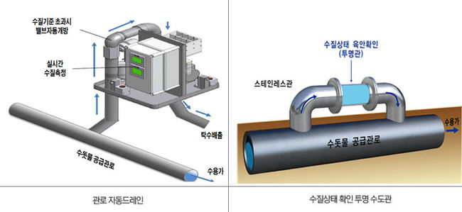 자동드레인 설비는 수질 이상 발생 시 선제적 조치를 통해 탁수가 발생하더라도 자동 배출이 가능해 수질 오염의 즉각적인 대응과 수돗물에 대한 실시간 감시 및 관리가 가능해진다.