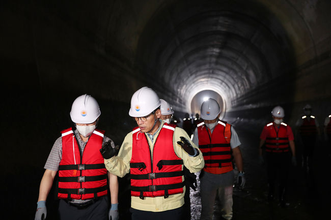 신월빗물저류배수시설 현장점검중인 이 구청장