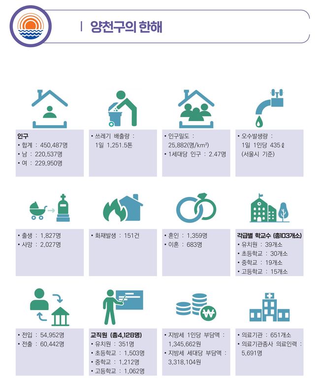 이기재 양천구청장은 “이번에 발간된 통계연보가 구민 맞춤형 정책을 수립하는 데 유용하게 활용되길 기대한다”면서 “앞으로도 신뢰할 수 있는 자료가 제공될 수 있도록 최선을 다하겠다”고 말했다.