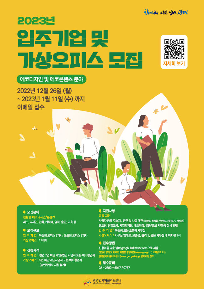 기타 자세한 사항은 광명업사이클아트센터 누리집을 통해 확인할 수 있다. 신청 마감일은 2023년 1월 11일까지로 신청 서식을 내려받아 이메일로 접수하면 된다.