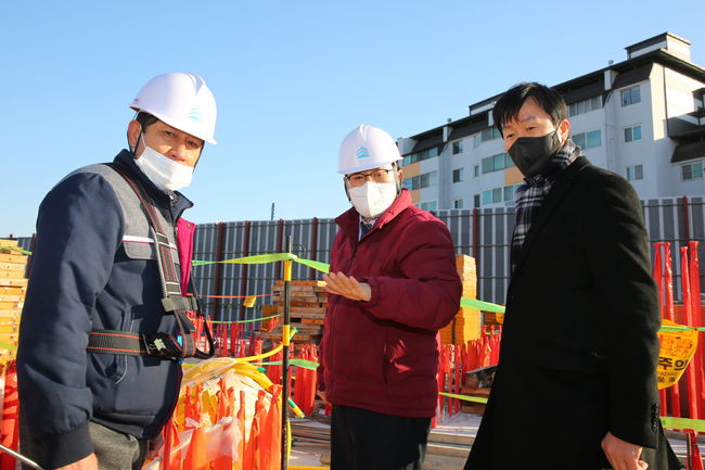 주낙영 경주시장은 지난 1월 국토부 주관 공모사업 선정으로 조성공사가 한창인 안강읍 산대리 고령자복지주택 현장을 찾아 추진 상황을 점검 하고 있다.