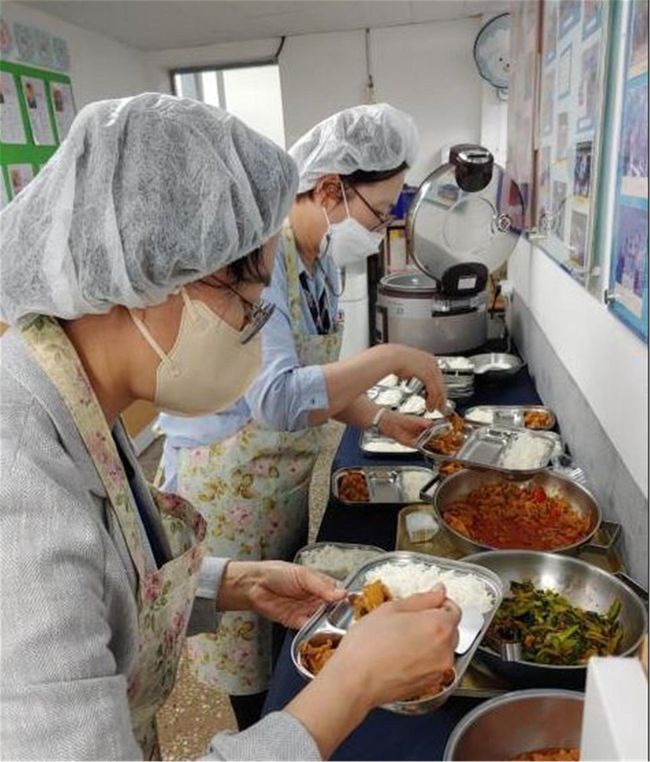 지역아동센터 급식을 준비중인 조리사
