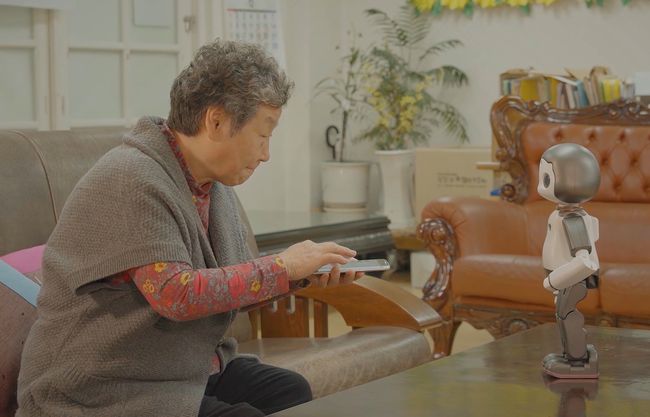 `아기로봇 리쿠`와 함께 앱 활용법을 배우는 어르신