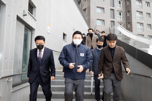 원희룡 국토교통부 장관은 1월 13일 오전 10시 서울 고척의 공공지원 민간임대주택 입주 현장을 방문하여 하자 처리 상황 등 입주 환경을 점검하고 입주민들의 애로사항을 청취했다. 사진=국토교통부 제공