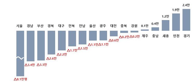 `21년 대비 `22년 시 · 도별 주민등록 인구 증감 현황