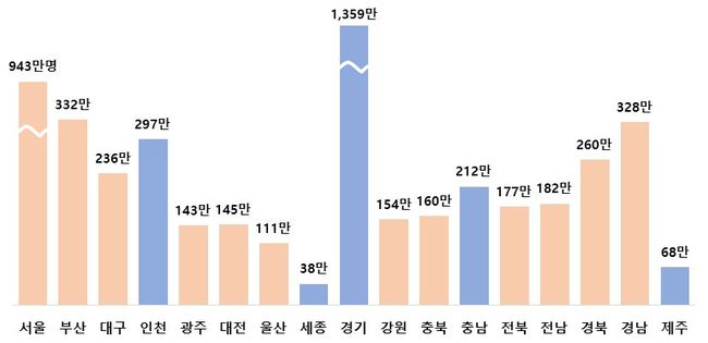 2015년 처음으로 여자 인구가 남자 인구를 추월한 이래, 증가하는 모습을 보이던 여자(25,802,087명)와 남자(25,636,951명)간의 인구 격차(여자-남자)는 역대 최대(165,136명)로 벌어졌다.