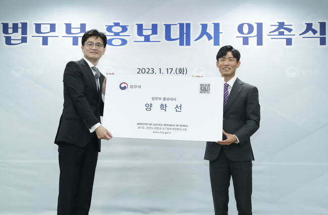 오늘 법무부 홍보대사에 위촉된 양학선 선수는 청소년 범죄예방, 법질서 지키기 실천 운동, 범죄예방 환경개선사업 등 법무부 정책과 관련한 다양한 온·오프라인 캠페인에 참여할 예정이다.