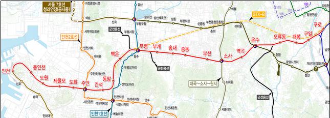 한편 경인전철 지하화 구간은 인천역부터 서울 구로역까지 27㎞, 21개 정거장이며, 이 중 인천 구간은 인천역에서 부개역까지 11개 정거장, 14㎞다.