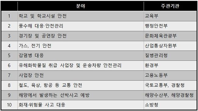 이번 공모과제는 재난 안전에 대해 국민적 관심과 중요도가 높아짐에 따라, 관련 부처와 회의를 통해 국민 생활에 밀접하고 빈번히 발생하는 재난안전사고 분야를 중심으로 10개 분야 과제를 선정했다.