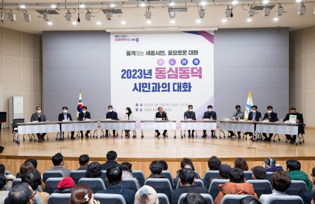 세종특별자치시는 지난 19일 아름동 복합커뮤니티센터에서 ‘2023년 동심동덕 2차 시민과의 대화’를 열고 아름·한솔·도담·종촌·고운·새롬·다정·해밀동 시민들과 대화를 나눴다.