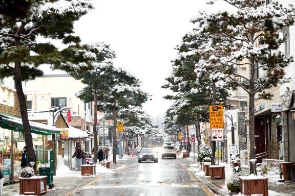 이팝나무, 배롱나무, 은행나무, 버드나무, 대왕참나무, 메타세콰이아, 느티나무, 소나무 등 아름다운 가로수가 줄지어있는 가로수길을 볼 수 있다.