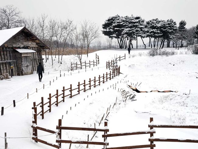150만평에 이르는 대지에 내려앉은 눈길은 하늘과 어우러져 겨울왕국을 연상케 한다. 댑싸리도 갈대숲도 모두 흰옷을 입어 고즈넉하다. 시흥시 캐릭터 해로와 토로, 소금창고의 염부가 설경 안에서 겨울을 한껏 누리고 있다.