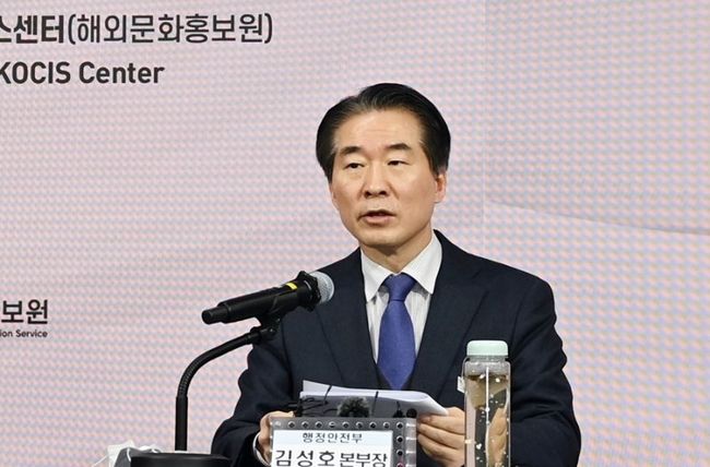 김성호 행정안전부 재난안전관리본부장이 31일 오후 서울 중구 한국프레스센터 브리핑룸에서 『국가안전시스템개편 종합대책』에 대한 외신브리핑을 하고 있다.