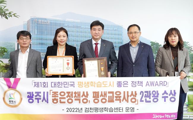 광주시가 제1회 대한민국 평생학습도시 좋은 정책 어워드(AWARD) 시상식에서 ‘좋은정책상’과 ‘평생교육사(신인상)’을 받아 2관왕을 차지했다고 밝혔다.
