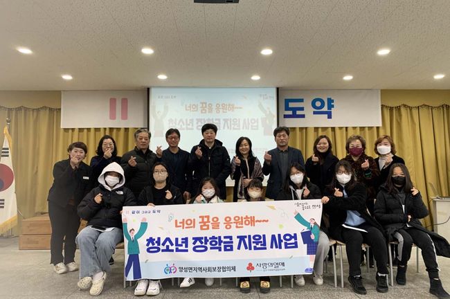 `청소년 장학금 지원사업`은 저소득 가정의 아동·청소년에게 건강한 성장과 미래에 대한 희망을 지원하기 위해 (주)조영이앤씨의 지정기탁금과 사회복지공동모금회 사업비를 활용하여 양성면 지역사회보장협의체 지역특화사업의 일환으로 진행됐다.