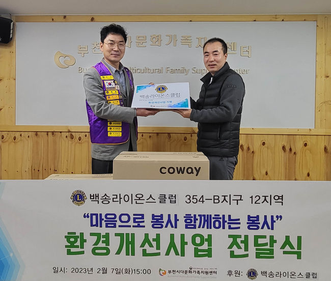 부천시다문화가족지원센터는 지난 7일 백송라이온스클럽 주관으로 환경개선사업 물품 전달식을 진행했다고 8일 밝혔다.