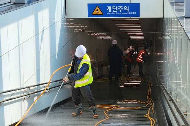 영통구, 봄맞이 도로시설물 세척 실시 (사진제공=영통구청)영통구는 망포역 4~7번 출구세척을 시작으로 고압세척기 등을 동원하여 그 동안 매연, 먼지, 쓰레기 등으로 오염된 시설물의 묵은 때와 얼룩 등을 제거했다.