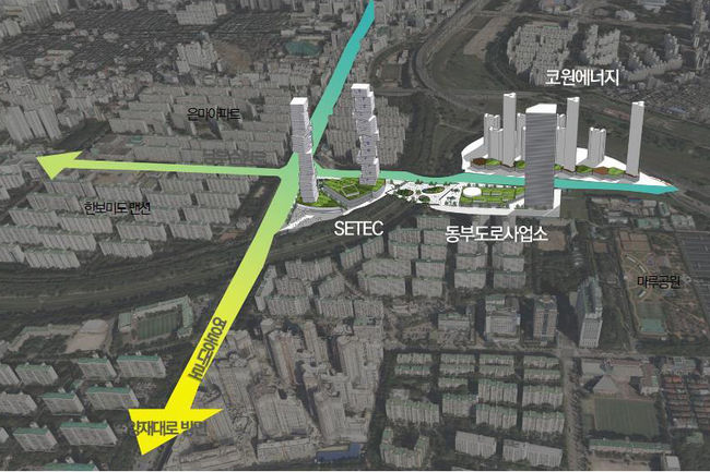 서울시가 ㈜코원 부지와 연계한 세텍(SETEC, Seoul Trade Exhibition & Convention, 이하 세택) 일대 복합개발계획을 위한 `양재천·탄천 합수부 일대 저이용부지 마스터플랜용역`을 본격 시행한다고 밝혔다.