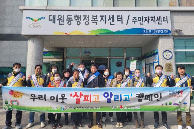 오산시 대원동 지역사회보장협의체가 지난 17일 주위의 도움이 필요함에도 복지혜택을 받지 못하는 위기가구 발굴을 위해 “우리 이웃 살피고 알리고” 복지 사각지대 발굴 캠페인을 펼쳤다.