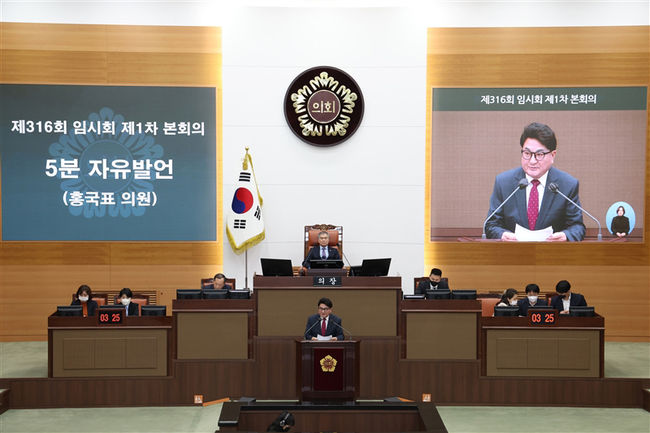 서울시의회 홍국표 의원(국민의힘·도봉2)은 제316회 임시회 제1차 본회의에서 지난 1월 징역형 집행유예를 선고받은 조희연 서울시 교육감에게 서울시민과 학생을 위한 현명한 결단을 해줄 것을 촉구하는 5분 자유발언을 진행했다.
