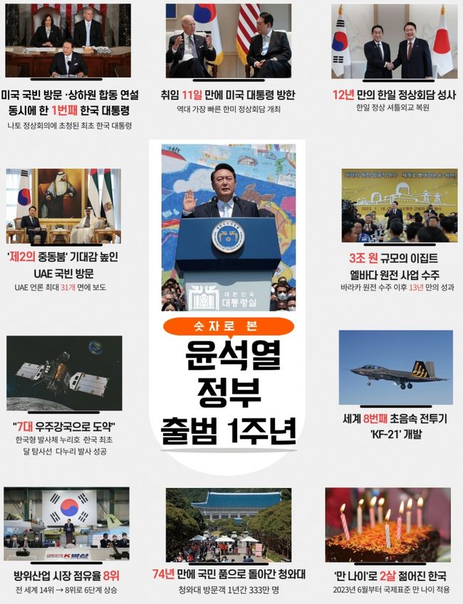 문화체육관광부 해외문화홍보원은 자체 시스템(외신지원시스템)에 등재된 한국 관련 외신기사들을 분석해 ‘숫자로 보는 1년’과 ‘통계로 보는 1년’, ‘한국문화 1년’ 등을 주제로 윤석열 정부의 지난 1년간 주요 성과와 과제들을 짚어 보았다.