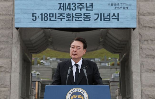 윤석열 대통령은 1일 오전 국립5·18민주묘지에서 개최된 제43주년 5·18민주화운동 기념식에 참석해, 오월 정신은 자유민주주의 헌법 정신 그 자체이며 우리가 반드시 계승해야 할 소중한 자산이라고 밝혔다.