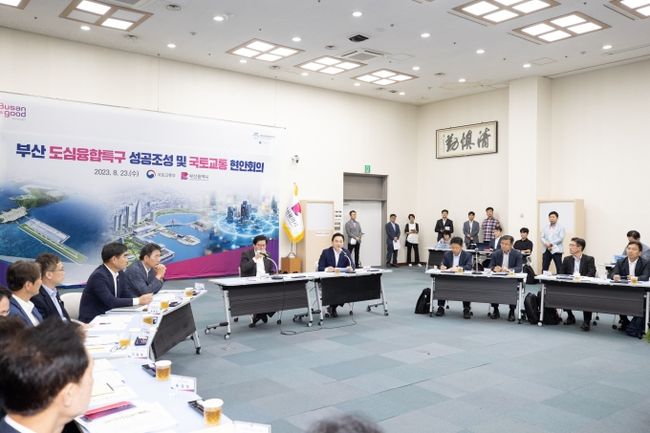 원희룡 국토교통부 장관은 8월 23일 오전 10시 부산광역시청에서 박형준 부산광역시장과 현안회의를 가지고 부산 도심융합특구의 성공적인 조성 방안과 부산의 발전을 위한 국토교통 현안과제를 논의했다.
