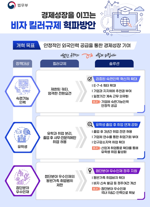 경제성장을 이끄는 비자 킬러규제 혁파방안 (그래픽 자료=법무부)