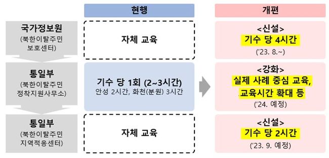 이에 관계부처는 북한이탈주민의 대한민국 입국 시부터 사회진출 이후의 전 과정에서 전문적이고 일관된 교육을 추진하기로 했다.