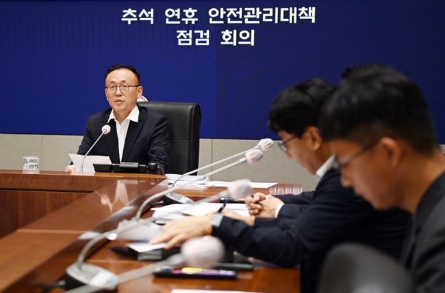 이한경 행정안전부 재난안전관리본부장이 지난 21일 서울 종로구 정부서울청사 서울상황센터에서 열린 `추석 연휴 안전관리대책 점검 회의`에 참석해 모두발언을 하고 있다.
