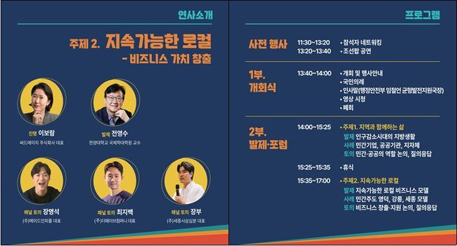 주제별 발표는 ‘지역과 함께하는 삶’과 ‘지속가능한 로컬’ 등으로 진행된다.