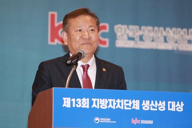 이상민 행정안정부 장관이 2일 오후 대전시 유성구 대전컨벤션센터에서 열린 `제13회 지방자치단체 생산성 대상` 시상식에 참석해 축사를 하고 있다.