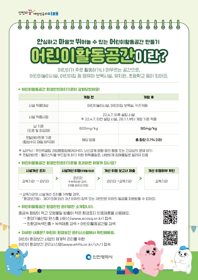 ‘2024년 인천시 어린이 환경보건 역점사업’의 일환으로 실시되는 이번 특별점검은 2021년 개정된 환경보건법에 대응키 위한 것이다.