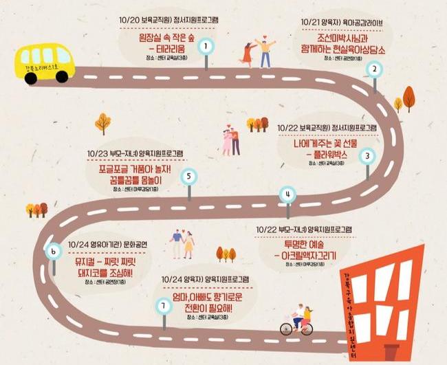 서울 강북구(구청장 이순희)는 강북구육아종합지원센터가 오는 10월 20일(월)부터 24일(금)까지 보육주간 기념행사 '북적북적 페스타-보육에 물들다'를 개최한다고 밝혔다.