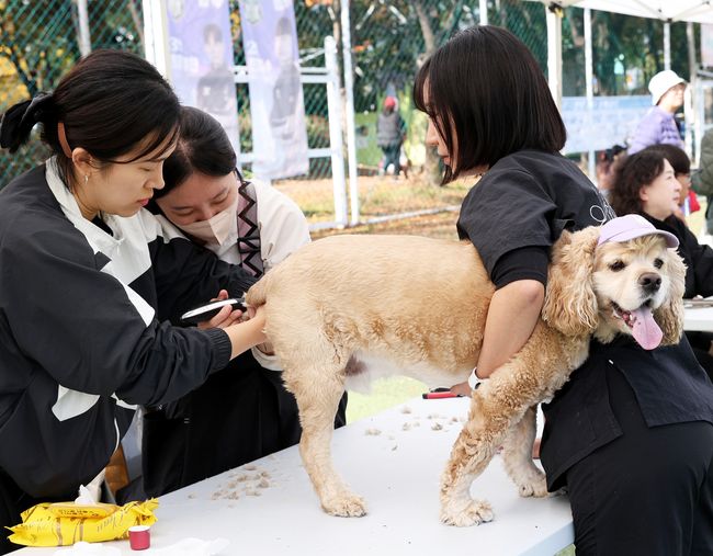 '2024 노원에서 반려동물과 함께 즐겨요' 애견 미용 체험 부스 모습.서울 노원구(구청장 오승록)는 오는 10월 25일(토) 오전 10시부터 오후 4시까지 마들스타디움 축구장에서 반려동물 문화축제 ‘2025 노원에서 반려동물과 함께 즐겨요(이하 노원반함)’을 연다고 밝혔다.