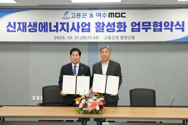 고흥군(군수 공영민)이 여수문화방송(사장 이호인)과 지역의 신재생에너지 활성화와 친환경 에너지 산업 육성을 위해 손을 맞잡았다.