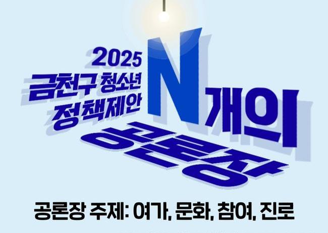금천구(구청장 유성훈)는 25일 오후 1시 금천구청사 12층 대강당에서 2025 금천구 청소년 정책토론회 'N개의 공론장'을 개최한다고 밝혔다.