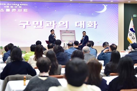 연수구(구청장 이재호)는 지난 27일 구청 3층 대회의실에서 구정 현안과 미래 비전을 주민들과 공유하기 위한 '별빛 아래 소통 콘서트'를 성황리에 마쳤다.