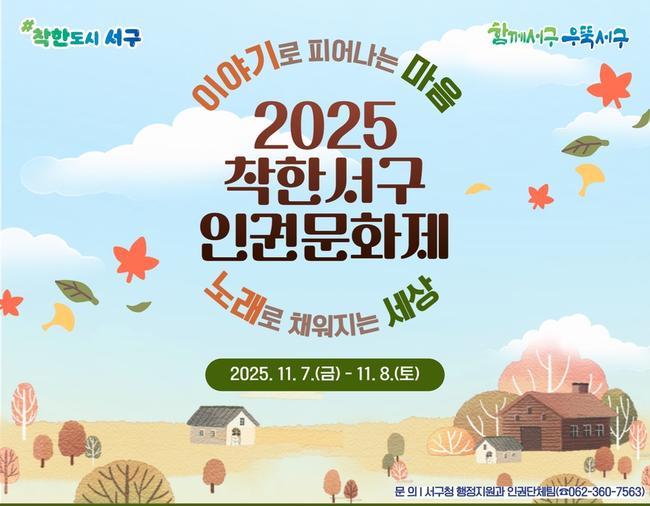 광주광역시 서구(구청장 김이강)가 주민 참여 기반 인권문화 정착에 박차를 가한다. 서구는 오는 7일과 8일 이틀간 '이야기로 피어나는 마음, 노래로 채워지는 세상'을 주제로 '2025 착한서구 인권문화제'를 개최한다.