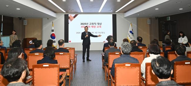 이번 교육은 2021년부터 고위직 공무원을 대상으로 '4대 폭력 예방 교육'이 의무화됨에 따라, 공공기관의 성희롱·성폭력 방지 의무를 이행하고 성 평등한 조직문화를 조성하기 위해 마련됐다.