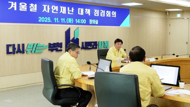 1. 조용익 부천시장이 지난 11일 시청 창의실에서 ‘2025~2026년 겨울철 자연재난 종합대책 점검회의’를 열고 분야별 대응 방안을 살폈다.부천시는 19일 ‘2025~2026년 겨울철 자연재난 종합대책’을 수립하고 내년 3월 15일까지 폭설·한파 대응에 나선다고 밝혔다.