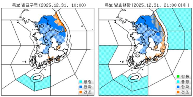 한파주의보 발표현황('25.12.31. 오전 10시)
