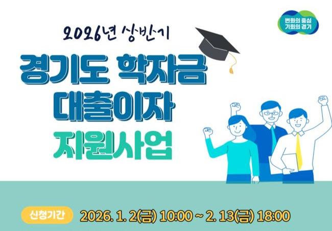 경기도는 ‘2026년 상반기 대학생 학자금 대출 이자 지원사업’ 신청을 2월 13일까지 접수한다.