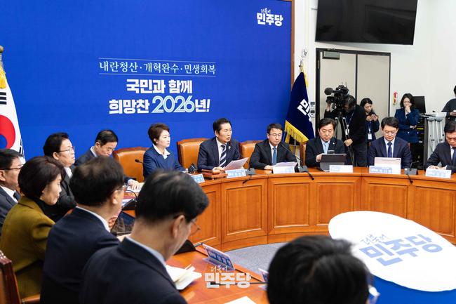 정청래 당대표가 2026.01.16.(금) 국회 본청 당대표회의실에서 열린 최고위원회의를 주재하고 있다.