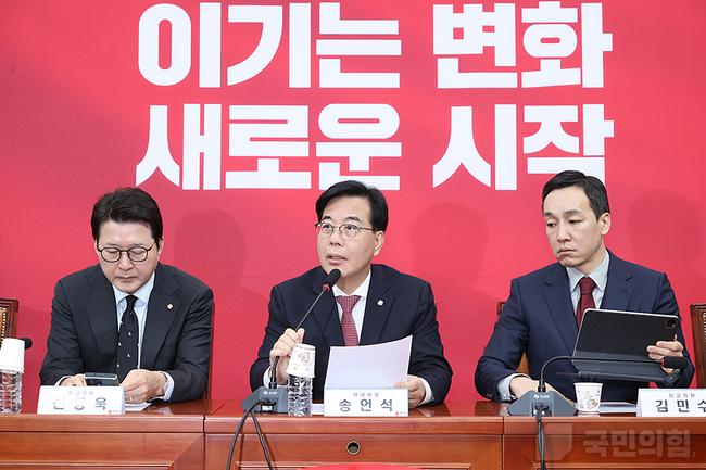 국민의힘은 26일 국회에서 열린 최고위원회의에서 송언석 원내대표 발언을 통해 더불어민주당 공천뇌물 의혹과 이재명 정권의 언론·사법 탄압을 문제 삼으며 공천뇌물 특검 수용과 언론 입틀막법 철회를 강력히 촉구했다.