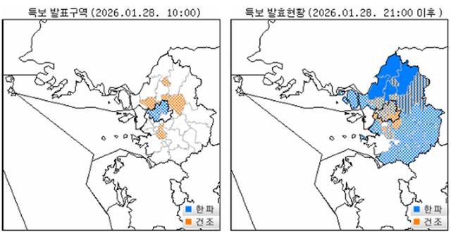 한파주의보 발표현황('26. 1. 28. 오전 10시)
