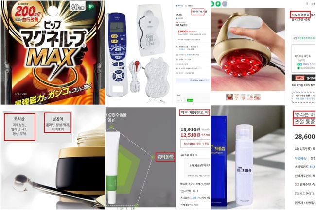 의료기기 분야에서는 의료용자기발생기, 개인용저주파자극기, 전동식 부항기와 관련한 불법 해외 구매대행 광고 100건이 적발됐다. 이는 국내 허가를 받지 않은 의료기기를 정식 수입 절차가 아닌 직구 형태로 유통하려는 광고 행위에 해당한다.