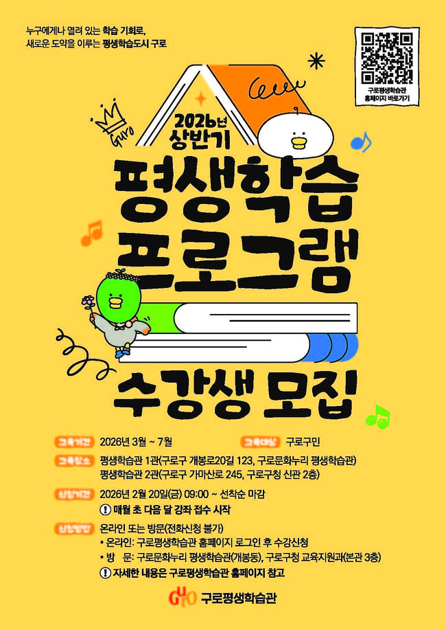 구로구가 2026년 상반기 평생학습 프로그램을 운영한다.