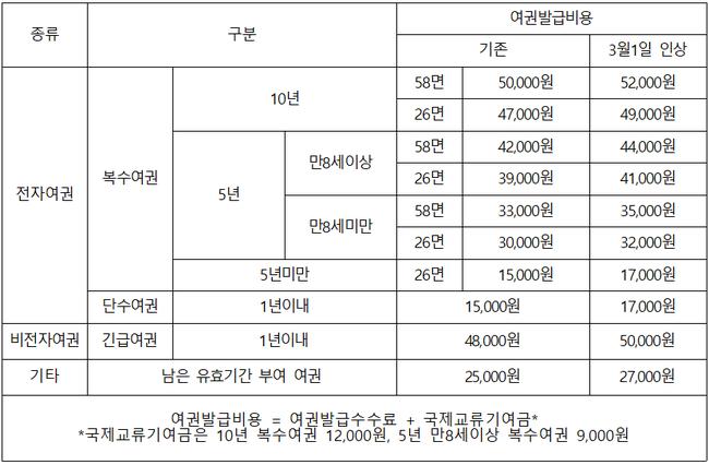 오는 3월 1일부터 여권 발급수수료가 2천 원 인상된다.